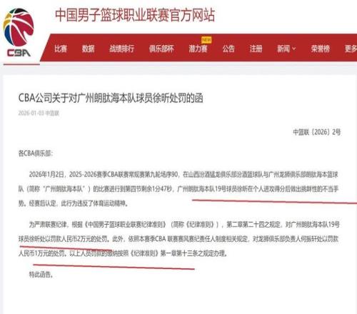 CBA公司在昨晚深夜11点开出本赛季的第二张罚单,广州队员徐昕被罚款了,俱乐部负责人何振轩有连带责任也遭到处罚。