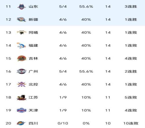 CBA积分榜最新排名出炉!辽篮被广州挤到第8:广东第3新疆第17