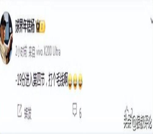 媒体人周赫发文点评:看完比赛大家都有些沮丧,甚至气愤,这能理解。毕竟过去几年北控还是在往上走的,今年感觉下滑的太快了。大家在网上把怨气发泄到教练员身上,这种情况也正常,但我们都只是旁观者,我们不是内部人士,我们不清楚具体情况,所以我不想也不会把矛头指向某一个人。