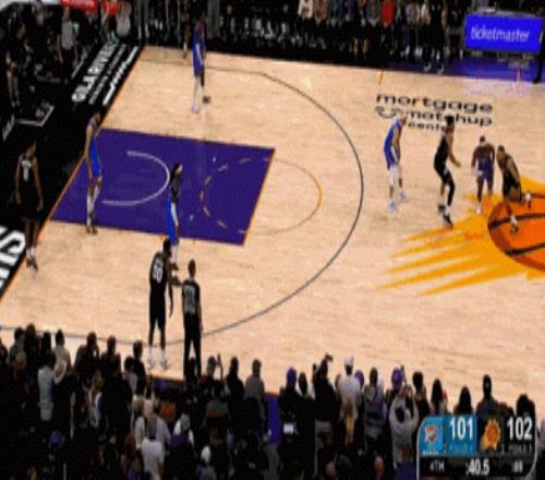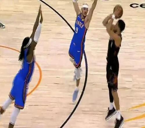 就在上半场尾声,太阳队终于醒过来了!靠着强硬的防守,逼迫雷霆队最后三分半钟一分未得,进攻端也找回准星,轰出一波11比0的小高潮,半场结束时把分差追到只剩七分。