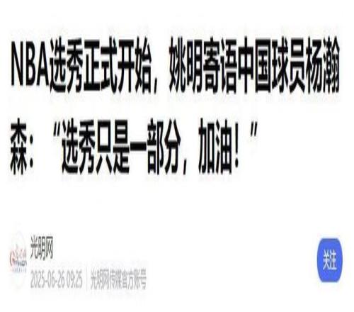 参考资料:光明网《NBA选秀正式开始,姚明寄语中国球员杨瀚森:“选秀只是一部分,加油!”》