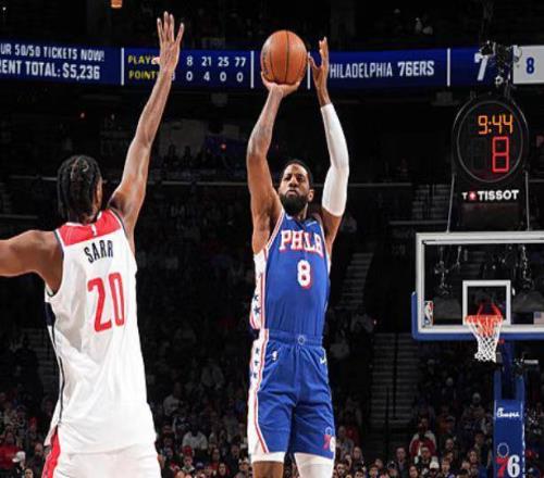 76人三巨头73分三杀奇才恩比德28+7马克西22+8乔治23分