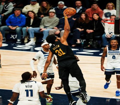 加兰被封盖,里德大帽阿伦,两队连续单打不中,加兰2罚不进。阿伦空接扣篮打破僵局,梅里尔抢断后助攻莫布里上篮得分,加兰抛投得手,迪文琴佐回敬2记3分球。泰森篮下取分,里德2罚1中,米切尔命中2+1。麦克丹尼尔斯抛投得分,戈贝尔2罚1中,兰德尔与加兰在中远距离斗法。阿伦暴扣,康利回敬三分球,米切尔2罚全中。阿伦抢断,莫布里空接得分,戈贝尔篮下打进2球予以回应。米切尔里突外投未能得分,半场打完,骑士以67比63领先。