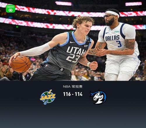 第四节爵士马尔卡宁拿下10分,独行侠克莱-汤普森拿下6分,最终爵士116-114战胜独行侠
