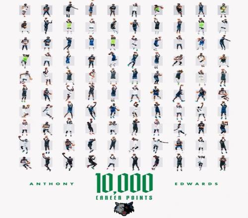 第四,爱德华兹也因此成为了NBA历史上第7位在年满25岁之前拿到10000分的球员,其余六人是:科比、麦迪、詹姆斯、安东尼、杜兰特和东契奇。