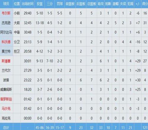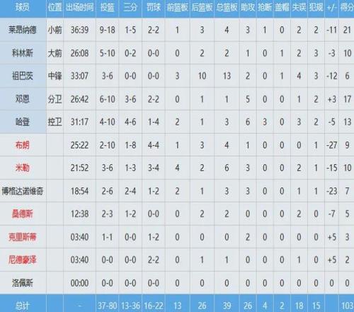 快船主场103-121不敌灰熊,近十战九负,目前以6胜20负西部倒数第二&联盟第三差。