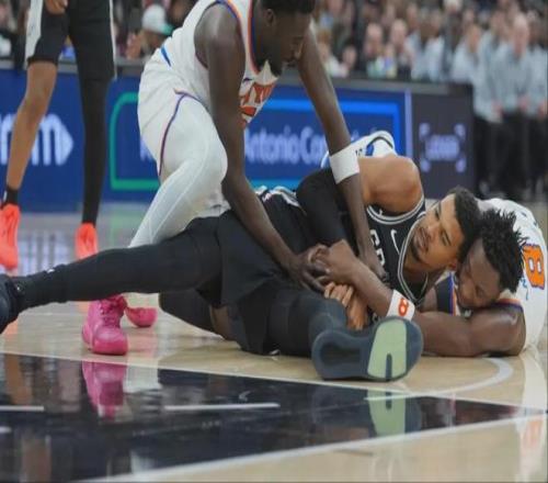 昨天马刺vs尼克斯,第四节刚打1分多钟,文班亚马抢篮板落地时左膝遭遇过度伸展,直接退出比赛。文班赛后表示自己问题不大:“我本来想重新登场的,但球队阻止了我。为球队倾尽所有是我的责任,我们都需要那种额外的拼劲!”