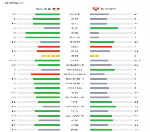 第7分钟,先拔头筹,昂达夫助攻莱韦林前插捅射破门,斯图加特1-0