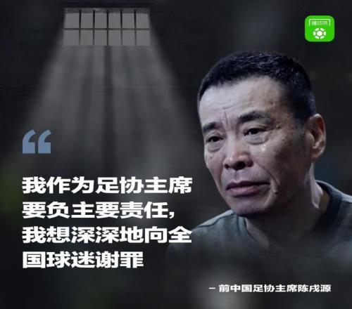 2024年1月5日,央视新闻发布年度反腐专题片,中国足协原主席陈戌源在镜头前落泪谢罪:“我作为足协主席来说,我负主要责任,我想深深地向全国球迷,真的要谢罪,我错了。”