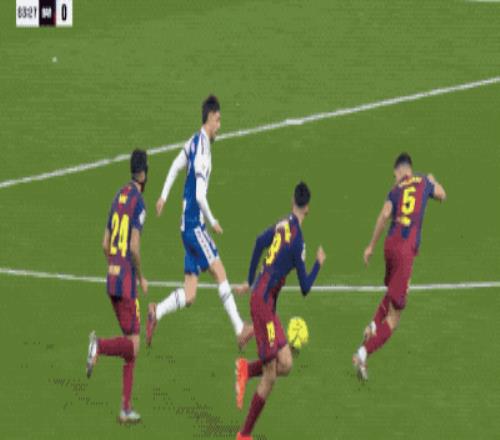 开场不到3分钟,亚马尔送出传中,卡莱罗居然踢漏了,费兰·托雷斯也没有想到对方中卫会出现失误,错失良机。