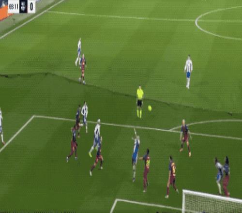 第37分钟,巴萨获得了前场任意球,拉菲尼亚传中,费兰·托雷斯跑得太快,不得不后仰头球攻门,皮球顶偏。