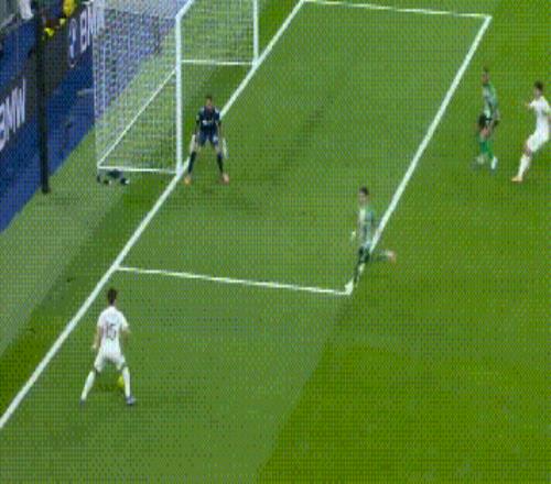 这2个进球,已经让现场的球迷和场边的阿隆索拍手叫绝,但是相比之下,贡萨洛-加西亚的第3个进球,更是让人叹为观止。第82分钟,居莱尔在禁区内横传到门前,贡萨洛-加西亚竟然用脚后跟把球磕进死角,这样匪夷所思的进球,伯纳乌已经多时未见,这绝对是一个足以竞争本赛季西甲最佳进球的进球。
