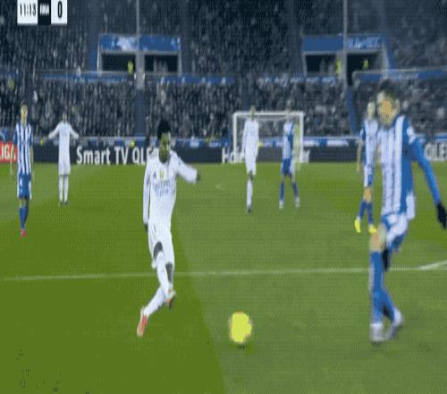 半场比赛结束皇马暂时以10领先阿拉维斯姆巴佩打入一球贝林厄姆助攻和进球被判无效_西甲直播