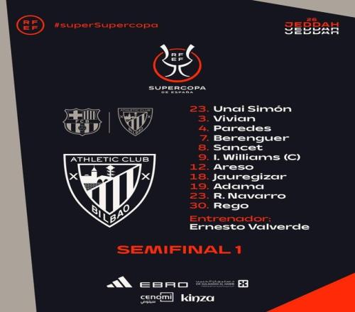 北京时间1月8日3:00,西超杯半决赛,巴萨对阵毕尔巴鄂竞技。赛前首发公布。