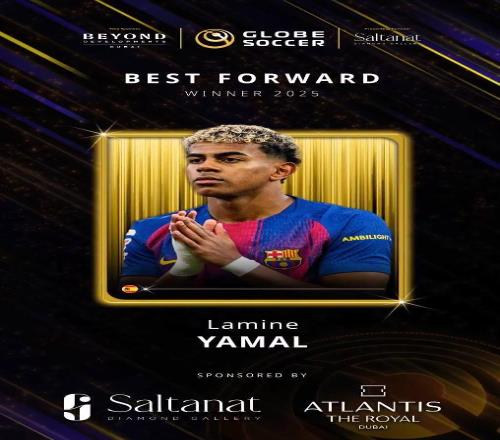 北京时间12月29日,环球足球奖官方宣布,巴塞罗那的锋线球星亚马尔当选他们评出的2025年最佳前锋。