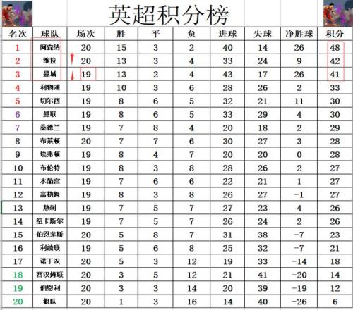 英超最新积分战报阿森纳逆转多曼城7分黑马升至第2副班长首胜