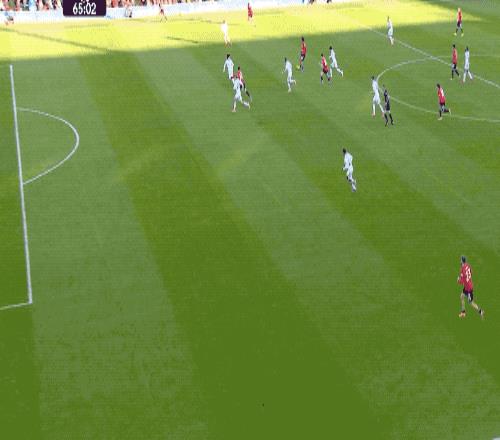 第30分钟,曼联三名后卫配合,卢克肖开出角球,利马回做,达洛特原地摆腿的射门,放了高射炮。