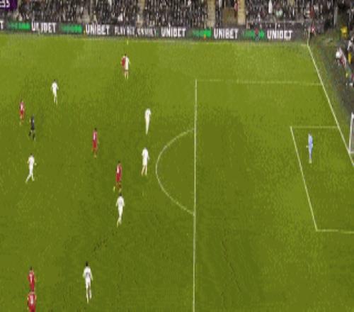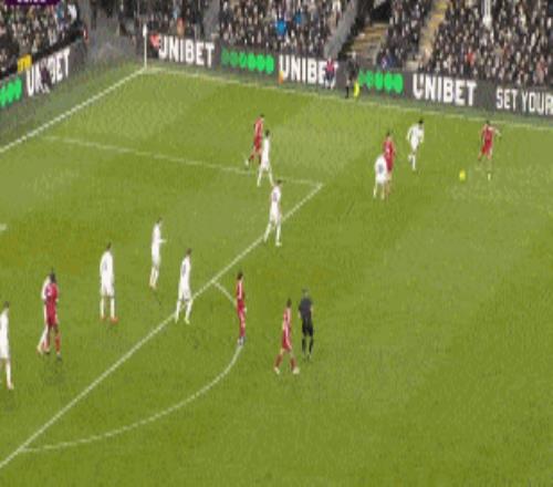 第16分钟,昆卡直塞,威尔逊前插获得单刀,突入禁区低射得手,主裁第一时间吹罚越位,VAR介入后判定没有越位进球有效,富勒姆1-0利物浦。