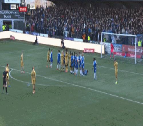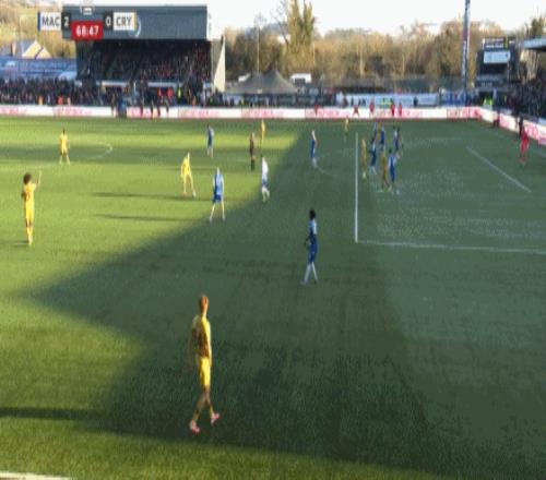 久攻不下情况下,水晶宫后防线却在防守定位球时漏人。第43分钟,道森抢点破门,麦克斯菲尔德1-0领先。