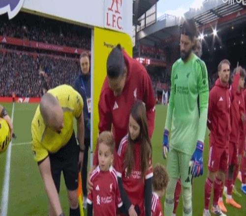安菲尔德感人一幕!若塔幼子担任球童,裁判躬身击掌,你永不独行