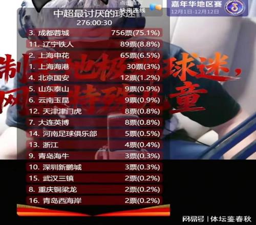 虽然2025赛季的中超联赛已经结束,但球迷们的热情却依然高涨。而近期一次看似随意的直播投票,却在球迷圈里掀起了不大不小的波澜。最近,一位大连体育博主在自己的直播间里突发奇想,搞了一个“中超最不受欢迎球迷榜”的投票。本来只是聊天互动,没想到投票结果一出来,弹幕直接炸屏了。