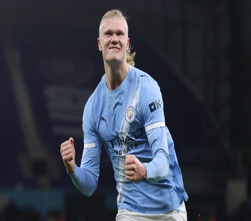 哈兰德已在本赛季联赛打进20球,为五大联赛第一人