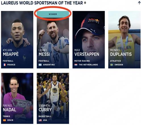 梅西荣膺劳伦斯年度最佳男运动员生涯第2次当选