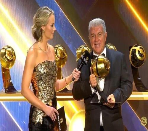 弗里克当选环足奖2025年西甲最佳教练奖,奖杯由拉波尔塔代领