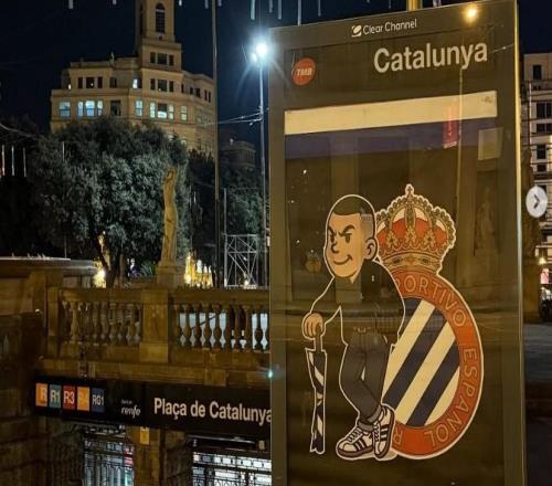 攻占巴塞罗那西班牙人球迷在全城公交车站张贴近200张海报